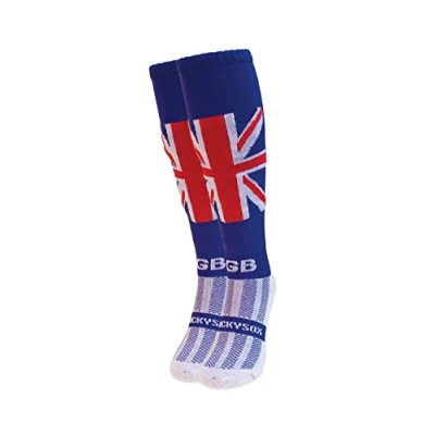PLEASE CHOOSE SIZE CAREFULLY. SIZING OPTIONS ARE # Extra Small ( XS ) which is Child Shoe Size 9-12 # Small ( S ) which is Child Shoe Size 12-2 # Medium ( M ) which is Adult Shoe Size 2-6 # Large ( L ) which is Adult Shoe Size 7-11 # Extra Large ( XL ) which is Adult Shoe Size 11-14 # Extra Extra Large ( XXL ) which is Adult Shoe Size 14-18 RIDE IN COMFORT: Make a statement with our bold, colourful equestrian riding socks! These knee-length sports socks are ideal for horse riding and general fitness with a fully elasticated top so you don't have to worry about the socks falling down. MOISTURE-WICKING TECHNOLOGY: All our equestrian riding socks have COOLMAX Pro ultra-high performance padded footbeds that regulate temperature, keeping your feet cool and dry throughout your ride. SUPREME COMFORT: Made in Great Britain from 95% polyamide and 5% elastane which ensures a snug and soft fit on the leg. Our equestrian riding socks also feature external smooth toe seams to make blistering a thing of the past. All our socks have an elasticated ankle for support and an elasticated central foot band to help reduce slippage. A WACKY FOR ALL: Whether you ride for your own pleasure, enjoy show jumping or dressage, we have riding socks to suit you. Our WackySox are ideal for all children, men and women with bold designs to suit every occasion. Wacky by name and appearance but certainly not in terms of function and performance.