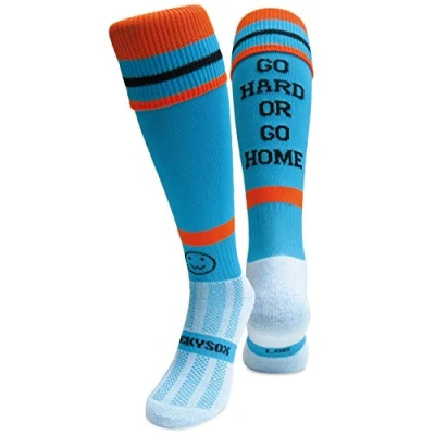WackySox Go Hard or Home Turquoise Blue Rugby Socks, Tour Hockey Sports Socks for Men and Women Suitable Football, Hockey, Running