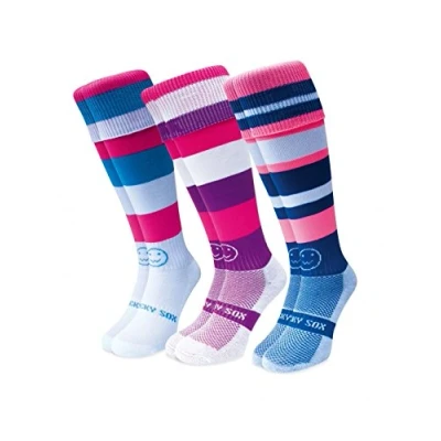 SIZING - Shoe Sizes: XS Size 9 - 12 | S Size 12 - 2 | M Size 2 - 6 | L Size 7 - 11 | XL Size 11 - 14 | XXL Size 14 - 18. Please make sure you choose the right size for you. Whether you need men's sports socks, long socks for women, or running socks men, we've got the perfect fit. PLAY IN COMFORT: Make a statement on the field with these bold multi-coloured knee-length wacky socks! These knee-length sports socks are ideal for rugby, football and hockey. They feature a fully elasticated turnover top so your socks won't fall down on match day. MOISTURE-WICKING TECHNOLOGY: All our sports socks have COOLMAX Pro ultra-high performance padded footbeds that regulate temperature, keeping your feet cool and dry throughout your match. SUPREME COMFORT: Made in Great Britain from 95% polyamide and 5% elastane which ensures a snug and soft fit on the leg, the socks can be worn with or without shin pads. Our knee-high socks also feature external smooth toe seams to make blistering a thing of the past. All our socks have an elasticated ankle for support and an elasticated central foot band to help reduce slippage. A WACKY FOR ALL: Whatever your sport or age, there's a WackySox for you. Our socks are ideal for all children, men and women with bold designs to suit every occasion. Wacky by name and appearance but certainly not in terms of function and performance.