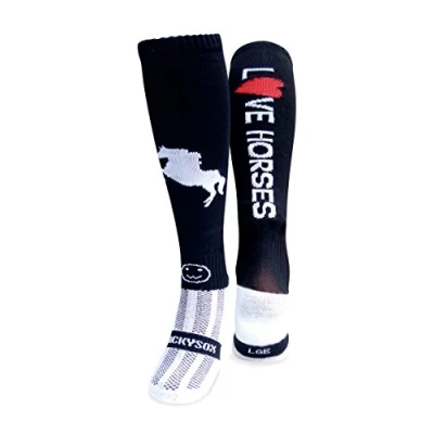WackySox Love Horses Black Equestrian Sports Socks, Men and Women Horse Riding Thermal Padded Long Socks for Riding, Running Hockey Football