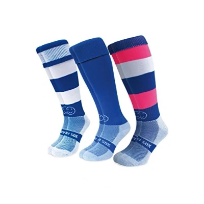 SIZING - Shoe Sizes: XS Size 9 - 12 | S Size 12 - 2 | M Size 2 - 6 | L Size 7 - 11 | XL Size 11 - 14 | XXL Size 14 - 18. Please make sure you choose the right size for you. Whether you need men's sports socks, long socks for women, or running socks men, we've got the perfect fit. PLAY IN COMFORT: Make a statement on the field with these bold multi-coloured knee-length wacky socks! These knee-length sports socks are ideal for rugby, football and hockey. They feature a fully elasticated turnover top so your socks won't fall down on match day. MOISTURE-WICKING TECHNOLOGY: All our sports socks have COOLMAX Pro ultra-high performance padded footbeds that regulate temperature, keeping your feet cool and dry throughout your match. SUPREME COMFORT: Made in Great Britain from 95% polyamide and 5% elastane which ensures a snug and soft fit on the leg, the socks can be worn with or without shin pads. Our knee-high socks also feature external smooth toe seams to make blistering a thing of the past. All our socks have an elasticated ankle for support and an elasticated central foot band to help reduce slippage. A WACKY FOR ALL: Whatever your sport or age, there's a WackySox for you. Our socks are ideal for all children, men and women with bold designs to suit every occasion. Wacky by name and appearance but certainly not in terms of function and performance.