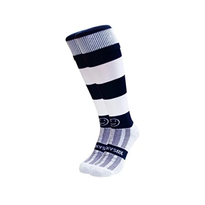 WackySox Navy Blue and White Hoop Knee Length Sports Socks
