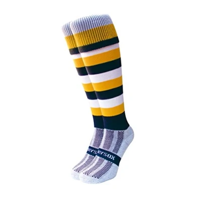 PLEASE CHOOSE SIZE CAREFULLY. SIZING OPTIONS ARE # Extra Small ( XS ) which is Child Shoe Size 9-12 # Small ( S ) which is Child Shoe Size 12-2 # Medium ( M ) which is Adult Shoe Size 2-6 # Large ( L ) which is Adult Shoe Size 7-11 # Extra Large ( XL ) which is Adult Shoe Size 11-14 # Extra Extra Large ( XXL ) which is Adult Shoe Size 14-18 PLAY IN COMFORT: Make a statement on the field with these bold multi-coloured knee-length wacky socks! These knee-length sports socks are ideal for rugby, football and hockey. They feature a fully elasticated turnover top so your socks won't fall down on match day. MOISTURE-WICKING TECHNOLOGY: All our sports socks have COOLMAX Pro ultra-high performance padded footbeds that regulate temperature, keeping your feet cool and dry throughout your match. SUPREME COMFORT: Made in Great Britain from 95% polyamide and 5% elastane which ensures a snug and soft fit on the leg, the socks can be worn with or without shin pads. Our knee-high socks also feature external smooth toe seams to make blistering a thing of the past. All our socks have an elasticated ankle for support and an elasticated central foot band to help reduce slippage. A WACKY FOR ALL: Whatever your sport or age, there's a WackySox for you. Our socks are ideal for all children, men and women with bold designs to suit every occasion. Wacky by name and appearance but certainly not in terms of function and performance.