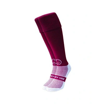 PLEASE CHOOSE SIZE CAREFULLY. SIZING OPTIONS ARE # Extra Small ( XS ) which is Child Shoe Size 9-12 # Small ( S ) which is Child Shoe Size 12-2 # Medium ( M ) which is Adult Shoe Size 2-6 # Large ( L ) which is Adult Shoe Size 7-11 # Extra Large ( XL ) which is Adult Shoe Size 11-14 # Extra Extra Large ( XXL ) which is Adult Shoe Size 14-18 PLAY IN COMFORT: Make a statement on the field with these bold multi-coloured knee-length wacky socks! These knee-length sports socks are ideal for rugby, football and hockey. They feature a fully elasticated turnover top so your socks won't fall down on match day. MOISTURE-WICKING TECHNOLOGY: All our sports socks have COOLMAX Pro ultra-high performance padded footbeds that regulate temperature, keeping your feet cool and dry throughout your match. SUPREME COMFORT: Made in Great Britain from 95% polyamide and 5% elastane which ensures a snug and soft fit on the leg, the socks can be worn with or without shin pads. Our knee-high socks also feature external smooth toe seams to make blistering a thing of the past. All our socks have an elasticated ankle for support and an elasticated central foot band to help reduce slippage. A WACKY FOR ALL: Whatever your sport or age, there's a WackySox for you. Our socks are ideal for all children, men and women with bold designs to suit every occasion. Wacky by name and appearance but certainly not in terms of function and performance.