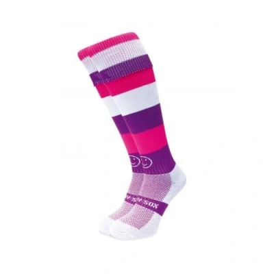 PLEASE CHOOSE SIZE CAREFULLY. SIZING OPTIONS ARE # Extra Small ( XS ) which is Child Shoe Size 9-12 # Small ( S ) which is Child Shoe Size 12-2 # Medium ( M ) which is Adult Shoe Size 2-6 # Large ( L ) which is Adult Shoe Size 7-11 # Extra Large ( XL ) which is Adult Shoe Size 11-14 # Extra Extra Large ( XXL ) which is Adult Shoe Size 14-18 PLAY IN COMFORT: Make a statement on the field with these bold multi-coloured knee-length wacky socks! These knee-length sports socks are ideal for rugby, football and hockey. They feature a fully elasticated turnover top so your socks won't fall down on match day. MOISTURE-WICKING TECHNOLOGY: All our sports socks have COOLMAX Pro ultra-high performance padded footbeds that regulate temperature, keeping your feet cool and dry throughout your match. SUPREME COMFORT: Made in Great Britain from 95% polyamide and 5% elastane which ensures a snug and soft fit on the leg, the socks can be worn with or without shin pads. Our knee-high socks also feature external smooth toe seams to make blistering a thing of the past. All our socks have an elasticated ankle for support and an elasticated central foot band to help reduce slippage. A WACKY FOR ALL: Whatever your sport or age, there's a WackySox for you. Our socks are ideal for all children, men and women with bold designs to suit every occasion. Wacky by name and appearance but certainly not in terms of function and performance.