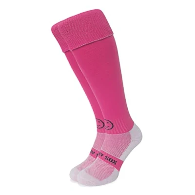 SIZING - Shoe Sizes: XS Size 9 - 12 | S Size 12 - 2 | M Size 2 - 6 | L Size 7 - 11 | XL Size 11 - 14 | XXL Size 14 - 18. Please make sure you choose the right size for you. Whether you need men's sports socks, long socks for women, or running socks men, we've got the perfect fit. MADE IN GREAT BRITAIN - from 95% polyamide and 5% elastane which ensures a snug and soft fit on the leg with extra stretch so the socks can be worn with or without shin pads. These sports socks have a fully elasticated turn over top to ensure they stay up while playing your sport. Our knee-high socks also feature external smooth toe seams to make blistering a thing of the past keeping you in the game longer. ELASTICATED BAND - All our socks have an elasticated ankle for support and an elasticated central foot band to help reduce slippage. Perfect for all types of physical activity, comfortable and durable allows you full range of motion, keeping you cool and focused as you exercise. Whether you're looking for rugby socks, hockey socks, womens sports socks, mens sports socks or general sports socks, our product ensures comfort and durability during any physical activity. MOISTURE-WICKING TECHNOLOGY: All our sports socks have COOLMAX Pro ultra-high performance padded footbeds that regulate temperature by pulling sweat away from the skin, keeping your feet cool and dry throughout your match. Ideal for anyone needing rugby socks, hockey socks, running socks women or men's sports socks, these are perfect. WACKY DESIGNS - Featuring strong and vibrant plain colours these socks are the perfect choice for team socks. Ideal as rugby socks, hockey socks and most team sports socks.
