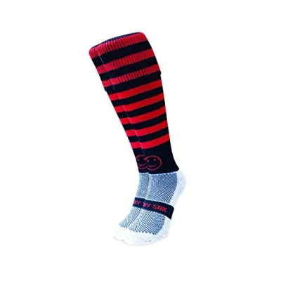 PLEASE CHOOSE SIZE CAREFULLY. SIZING OPTIONS ARE # Extra Small ( XS ) which is Child Shoe Size 9-12 # Small ( S ) which is Child Shoe Size 12-2 # Medium ( M ) which is Adult Shoe Size 2-6 # Large ( L ) which is Adult Shoe Size 7-11 # Extra Large ( XL ) which is Adult Shoe Size 11-14 # Extra Extra Large ( XXL ) which is Adult Shoe Size 14-18 PLAY IN COMFORT: Make a statement on the field with these bold multi-coloured knee-length wacky socks! These knee-length sports socks are ideal for rugby, football and hockey. They feature a fully elasticated turnover top so your socks won't fall down on match day. MOISTURE-WICKING TECHNOLOGY: All our sports socks have COOLMAX Pro ultra-high performance padded footbeds that regulate temperature, keeping your feet cool and dry throughout your match. SUPREME COMFORT: Made in Great Britain from 95% polyamide and 5% elastane which ensures a snug and soft fit on the leg, the socks can be worn with or without shin pads. Our knee-high socks also feature external smooth toe seams to make blistering a thing of the past. All our socks have an elasticated ankle for support and an elasticated central foot band to help reduce slippage. A WACKY FOR ALL: Whatever your sport or age, there's a WackySox for you. Our socks are ideal for all children, men and women with bold designs to suit every occasion. Wacky by name and appearance but certainly not in terms of function and performance.