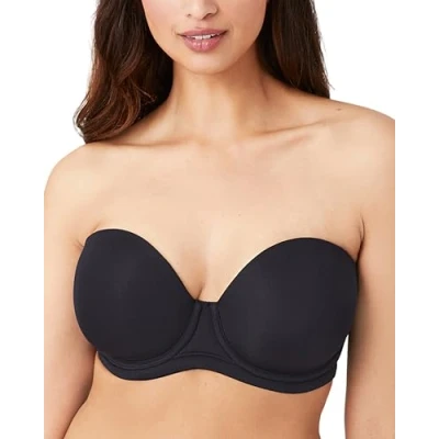 Boning at sides and back, Non-slip rubber binding at edges Optional, adjustable straps Multi-way silhouette Lightly padded underwire cups