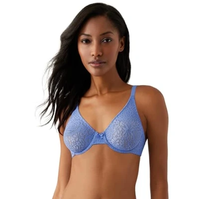 Wacoal Women's Halo Lace Unlined Convertible Underwire Bra, Opaque, Blue Hydrangea, 34B