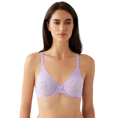 Wacoal Women's Halo Lace Unlined Convertible Underwire Bra, Purple Rose, 34DD