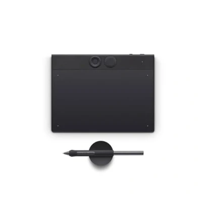 Wacom’s flagship tablet has been completely redesigned with advanced pen technology, an ergonomic layout and an ultra-slim 16:9 format. It offers exceptional precision, comfort, and versatility, with both USB and Bluetooth connectivity, empowering creators to achieve a seamless balance between work and flow. Compatible with both Windows and Mac. The Wacom Intuos Pro Small (2025) packs professional power into a compact, travel-friendly design. Built for creators who need top-tier performance without the bulk, it’s the trusted tool for everything from photo editing and illustration to sketching on the go. Backed by 40 years of Wacom expertise, it delivers the precision and control pros rely on—wherever creativity strikes. The ergonomic layout of the new ExpressKeys and mechanical dials accommodates both right- and left-handed users, while the configurable pen buttons, combined with easy wired USB and Bluetooth connectivity featuring multi-pairing, streamline even the most complex workflows. With up to 16 hours of battery life, you can maintain your creative flow longer without interruptions. Wacom Pro Pen 3 with 8,192 levels of pressure sensitivity offers ultra-precise strokes and is the perfect counterpart to the Wacom Intuos Pro pen tablet range. With customizable weights, buttons, and grips, it also ensures exceptional comfort and a fully optimized workflow. Box contents: 1 x Wacom Intuos Pro Small, Black (215 x 163 x 4~7 mm with 187 x 105 mm active area); USB C to A cable (1.8m); Wacom Pro Pen 3 (includes flare grip, balance weight, tall side switch insert with buttons); Pen stand (includes standard nib x 5, felt nib x 3, rubber nib x 2, nib remover x 1); Pen accessories: Straight grip, tall side switch insert no buttons, short side switch insert with buttons, short side switch insert no buttons; QSG, IPI sheet & Warranty card;