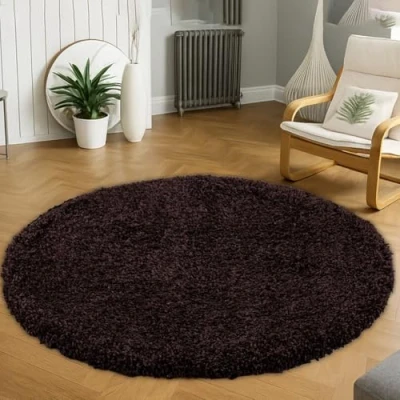 Wadan120cm Round Brown Shaggy Rugs Living Room 5mm Thick Pile Extra Large Small Medium Rectangular Size Soft Touch Area Non Shedding