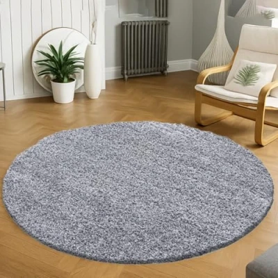 Wadan120cm Round Silver Shaggy Rugs Living Room 5mm Thick Pile Extra Large Small Medium Rectangular Size Soft Touch Area Non Shedding