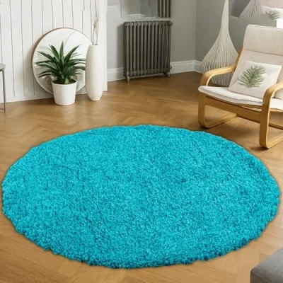 Wadan120cm Round Teal Blue Shaggy Rugs Living Room 5mm Thick Pile Extra Large Small Medium Rectangular Size Soft Touch Area Non Shedding