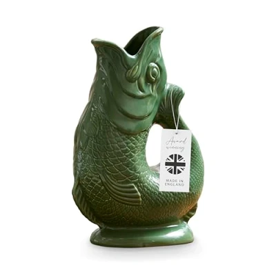 JoybuyWade Fish Jug 1.2L, Forest Green is a handcrafted English earthenware jug featuring a unique koi fish design, high-gloss glaze, and authentic glugging sound. Versatile for serving drinks or as décor, it's ideal for gifting and requires handwashing to maintain its heritage-quality finish.