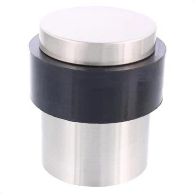 Wagner Floor Door Stopper Big Ben Diameter 35 x 40 mm, Satin Die Cast Aluminium, Soft Stop Made of Thermoplastic Rubber, Black, for Screwing Including Mounting Material 15517511