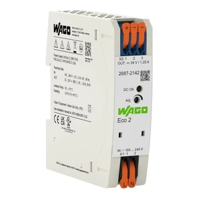 WAGO Compact Power Supply ECO 2687 2142, 1 Phase, Supply, DIN rail (DIN rail), 24 VDC, 1.25 A, DC OK LED