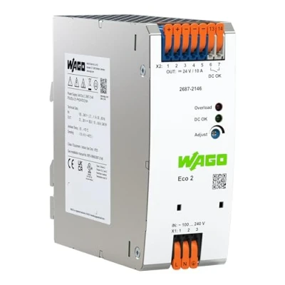 WAGO ECO2 Compact Power Supply, 1 Phase, 24VDC, DIN rail Supply 10A (Pack of 1)