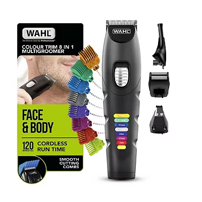 Wahl Colour Trim 8 in 1 Multigroomer, Coded Lengths, Mens Body Trimmers, Face and Grooming, Beard Trimmers Men, Rechargeable Trimmer, Cordless Stubble 4 Heads