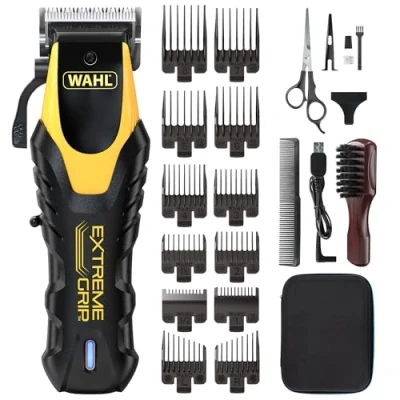 Wahl Extreme Grip Hair Clipper, Heavy Duty Motor, Snag Free Home Haircutting Kit, Non Slip Protective Rubber Sleeve, Taper Arm, 120 Minute Runtime, Lithium Ion Battery