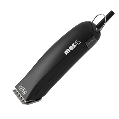 {{widget type="MagentoCmsBlockWidgetBlock" template="widget/static_block/default.phtml" block_id="1170" type_name="CMS Static Block"}} Wahl Max 45 Clipper The Wahl Max 45 2-speed professional clipper is designed with a PowerDrive Performance system, making it ideal for cutting through the thickest coats on dogs, cats, horses, and livestock. The clever fan-cooled motor ensures cooler operation and longer life, while its ergonomic and lightweight design provides comfort and control. The Pivot gear system reduces vibration, and the sealed motor requires no maintenance. At 70dB this clipper is one of the quietest available and on the lower speed setting is great for clipping nervous animals. Features Powerful 2-Speed DC Motor: Quiet (70dB), minimal vibration, and cool running technology with speeds of 2400/3000 RPM. Ergonomic Design: Comfortable use with excellent weight distribution, making it small but powerful. Detachable Air Filter: For easy cleaning and maintenance. Heavy Duty Clipping: Designed for body clipping and trimming dogs, cats, horses, and livestock. Ultra-Flexible Mains Cable: 3 meters long with a suspension ring for convenient storage. Specifications Dimensions: 18.5 x 5 x 5 cm Weight: 370 grams Motor: Rotary Motor Speed Options: 2 (2400/3000 SPM) Noise Level: 70dB Cord Length: 3 meters Warranty: 12 Months Power: 240v | 50Hz What's in the Box? Wahl Max 45 corded 2-speed clipper #10 Competition Series snap on blade Blade oil Cleaning Brush large cleaning brush Storage case Instruction booklet To Remove/Attach Your Blade: To remove the blade, push in the grey, arrowed release button below your clipper blade then gently pull the blade away until it pops out, allowing you to slide it free. To re-attach/replace the blade, simply slot the blade back into the clipper and push down on the tooth side until it clips back into place (Take care when applying pressure to your blade to avoid doing any damage to the teeth). Maintenance To ensure the longevity and performance of your clipper or trimmer, regular oiling is recommended: Blades: Should be oiled after cleaning with Hygienic spray. Clippers: Should be oiled with Blade oil after each use. Trimmers: Should be oiled once a day or after several uses. Frequently Bought Together {{widget type="MagentoCatalogWidgetBlockProductProductsList" template="Magento_PageBuilder::catalog/product/widget/content/carousel.phtml" anchor_text="" id_path="" show_pager="0" products_count="8" condition_option="sku" condition_option_value="8011, 812215, 827219, 2586, 4042, 880172, 8026, 845423" type_name="Catalog Products Carousel" conditions_encoded="^[`1`:^[`aggregator`:`all`,`new_child`:``,`type`:`Magento||CatalogWidget||Model||Rule||Condition||Combine`,`value`:`1`^],`1--1`:^[`operator`:`()`,`type`:`Magento||CatalogWidget||Model||Rule||Condition||Product`,`attribute`:`sku`,`value`:`8011, 812215, 827219, 2586, 4042, 880172, 8026, 845423`^]^]" sort_order="date_newest_top"}} Wahl Wahl has over 100 years’ experience in grooming. With humble beginnings as a family-owned clipper manufacturer, Wahl soon expanded to new areas and has become one of the most recognised brands in the pet grooming industry and continued to go from strength to strength. Using a combination of experience and innovation, Wahl continues to provide groomers with top-quality dog grooming clippers and trimmers, comb guides, and a fantastic range of wet products including shampoo for dogs, detangling sprays and conditioners for both home and salon use. Built to perform and constantly pushing the boundaries of innovation, Wahl products make the perfect addition to any salon. Still a family-owned business today, Wahl’s unwavering commitment to quality and service has kept the brand at the pinnacle of professional products for over 100 years and counting.