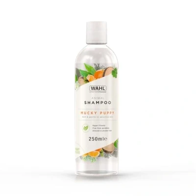 FOR PUPPIES & PETS WITH SENSITIVE SKIN - Wahl Mucky Puppy Shampoo has been carefully formulated as a ready-to-use shampoo that is gentle enough for the sensitive skin and coat of young animals. NATURAL FORMULA - Based on natural ingredients including Aloe Vera for extra sensitive skin, this pet shampoo is Paraben free, vegan friendly, gluten free, silicone free, phthalates free, alcohol free, sorbates free, phosphate free and DEA free. CLEANSING ACTION - Wahl Mucky Puppy has a mild cleansing action that will gently remove grease and dirt from the coat, leaving it clean and easy to brush. READY TO USE - Wahl Mucky Puppy Shampoo is already diluted and is suitable for use on all puppy’s hair types, including kittens. HOW TO USE - Shake bottle well before use. Saturate your pet’s coat with warm water. Apply the shampoo to the wet coat, work the shampoo into a foamy lather from head to tail, then rinse out thoroughly and towel dry. Repeat if necessary.