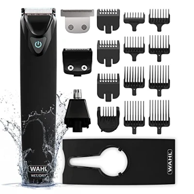 LONG LASTING, CORDLESS FLEXIBILITY - Wahl’s Advanced Lithium Ion technology allows up to an impressive 360 minutes cordless run time from a 60-minute charge which equivalates up to 4 months use on a single charge. Use the 1-minute quick charge that will give you 3 minutes continual use for last minute touch ups FULLY WASHABLE - Perfect for wet or dry use, the Stainless Steel 11 in 1 multigroomer can be used anywhere which makes this trimmer the perfect tool for easy use and cleaning MULTIFUNCTIONAL – Equipped with four interchangeable heads allow for beard trimming, close trimming, detail trimming, edging, long beard, short beard, stubble maintenance and total body grooming CLOSE CUTTING - The closest trimmer shave without the irritation of a traditional razor blade. We only use high precision blade grinding technology to ensure the best cutting performance. Our blades stay sharper for longer, ensuring you a clean cut without the irritation of a traditional razor LED DISPLAY – Designed with intelligent LED charging indicator that makes it easy to see when your trimmer is charging and when the charge is complete
