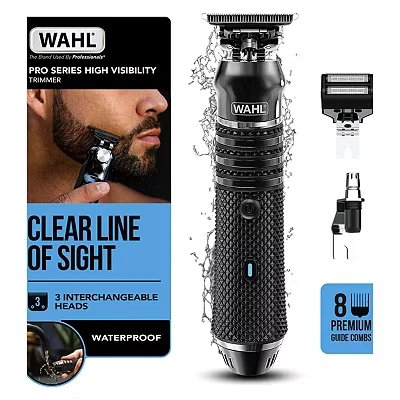 Wahl Pro Series High Visibility Trimmer, Close Cutting Blade, Lithium Ion, Waterproof Beard Grooming Kit, Interchangeable Heads, Professional, Cordless,