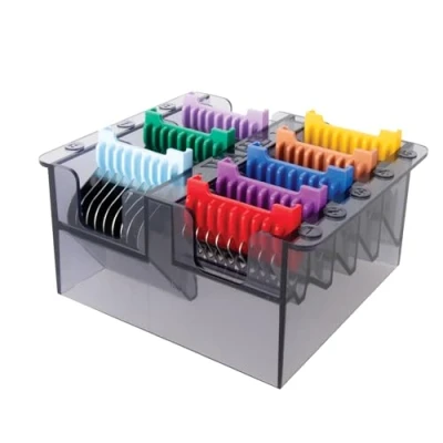 Convenient Stainless Steel Attachment Comb. Easily groom your dog at home with this stainless steel attachment comb that glides effortlessly through all types of pet fur and hair Includes eight color-coded cutting lengths--1/8, 1/4, 3/8, 1/2, 5/8, 3/4, 7/8, and 1-inch--for convenient and quick reference while clipping and grooming dogs, cats, horses, and other animals The guide combs glide effortlessly through nearly all pet fur and hair types, leaving a smooth finish when clipping and trimming your animal's coat For best performance, use on the #30 blade setting of your clipper; securely fits all 4 sides of the blade, preventing the comb from falling off or causing mistakes while clipping, trimming, and grooming Fits Only: Bravura, Arco, Chromado, Creativa and Figura Animal Clippers