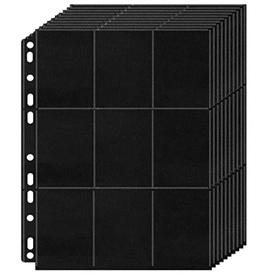 WAIZHIUA 35 Sheets Trading Card Sleeves, 630 Pockets Black Game Sleeves Holder Storage Wallets Album Pages Collection(Double Sided 9 Pocket)