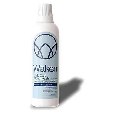 ADVANCED 6-IN-1 FORMULA: This alcohol-free Advanced Care Mouthwash helps prevent cavities, helps reduce plaque and prevent tartar, strengthens enamel, freshens breath and supports healthy gums. It contains 250ppm fluoride for daily oral care. GENTLE AND EFFECTIVE: Made without alcohol, this mouthwash helps you maintain healthy teeth and gums while delivering long-lasting fresh breath without the burn. NATURALLY FRESH: With natural peppermint and other natural ingredients, it leaves your mouth feeling clean and your breath feeling naturally fresh. 97.9% ingredients are of natural origin (ISO 16128). ONLY WHAT’S NECESSARY, CERTIFIED VEGAN: Like all Waken mouthwashes, this vegan formula is approved by the Vegetarian Society. It will never contain artificial colours or dyes. THOUGHTFUL PACKAGING: Waken mouthwash comes in recyclable packaging made with the bottle itself made of 100% recycled plastic. The label is made of 50% recycled plastic.