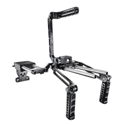complete set contains all components required for the use as a professional shoulder rig, including the counter-weight plate for additional powerpacks or weights outstanding precision and workmanship, exceptional materials and well thought-out engineering skills - 100% MADE IN GERMANY modular design. The base unit is the central element, which can be individually extended and adapted for any possible situation. With just a few flicks of the wrist this system can be converted from a tripod mounted unit to a very light shoulder rig Highest possible accuracy in milling and smallest tolerances includes: 1x walimex pro "Mutabilis" Action-Set incl. 1x base unit, 2x round rod 20 cm, 2x round rod 30 cm, 2x boom arm 20 cm, 2x handle, 4x fastening screws short, 1x shoulder pad, 1x shoulder support angle piece, 1x function handle, 1x shoulder support