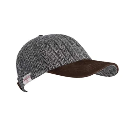 WALKER AND HAWKES Harris Tweed Brungton Baseball Cap w/Suede Leather Peak Steel Grey
