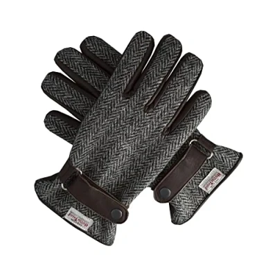 WALKER AND HAWKES Harris Tweed Hallbrook Gloves Steel Grey Small