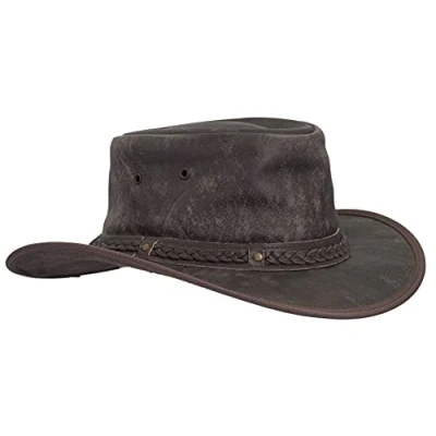WALKER AND HAWKES Leather Cowhide Canyon Outback Braided Hat Brown X Large (60cm)