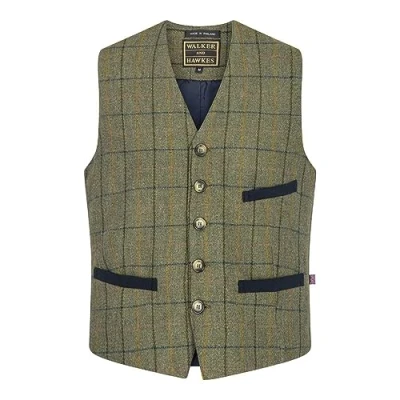 WALKER AND HAWKES Men's Derby Tweed Alcott Waistcoat Navy Stripe Large