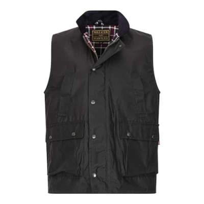 WALKER AND HAWKES Men's Winchester Multi Pocket Waxed Cotton Gilet Outdoor Camping Waistcoat Hiking Travelling Jacket Navy 3X Large