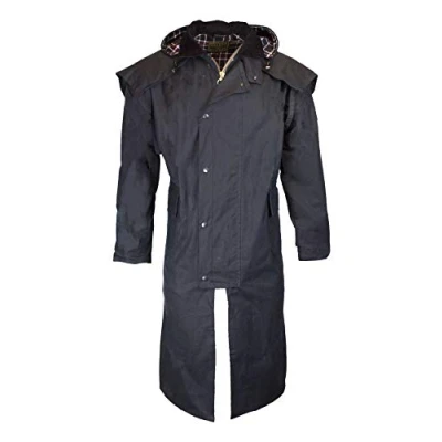 WALKER and HAWKES Men's Women 100% Wax Cotton Stockman Olive Brown Water Resistent Heavyweight Cape Coat Navy XL