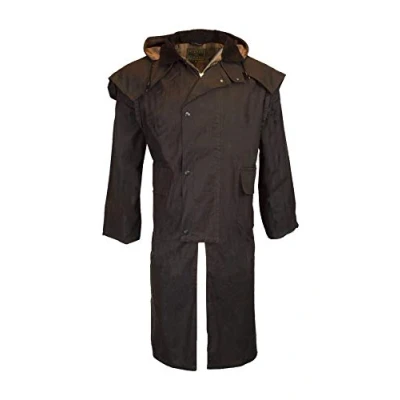 WALKER and HAWKES Men's Women 100% Wax Cotton Stockman Olive Brown Water Resistent Heavyweight Cape Coat X Small