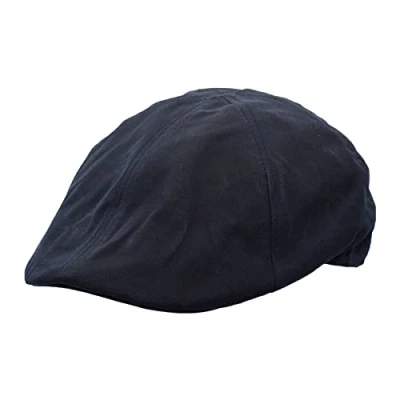 WALKER AND HAWKES Premium Olive British Wax 6 Panel Bernard Duckbill Waterpoof Flat Cap Unisex Navy X Small (56cm)
