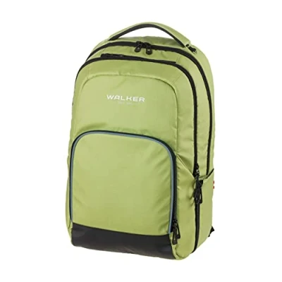 Walker College 2.0 42128 361 School Backpack with 3 Compartments, Zip Pocket, Side Pockets, Padded Back, Adjustable Hip, Shoulder and Chest Strap, Green, ca. 18 x 47 30 cm