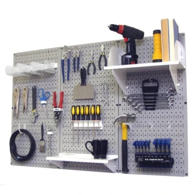 Wall Control 30 WRK 400 GW Pegboard Organizer 4' Metal Standard Tool Storage Kit with Gray Board and White Accessories