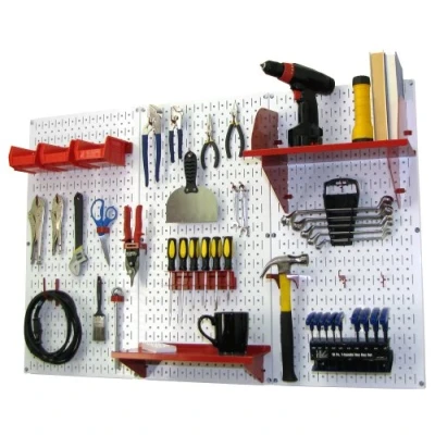 Wall Control 30 WRK 400 WR Pegboard Organizer 4' Metal Standard Tool Storage Kit with White Board and Red Accessories