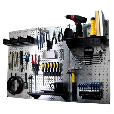 Wall Control Pegboard Organizer 4 ft. Metal Standard Tool Storage Kit with Galvanized Toolboard and Black Accessories