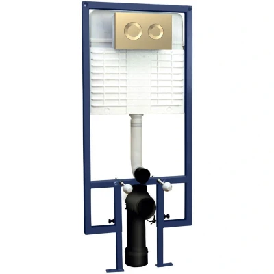 Wall Hung Toilet Frame 1136mm 1336mm h with Dual Flush Concealed Cistern Round Plate Brushed Brass Hudson Reed