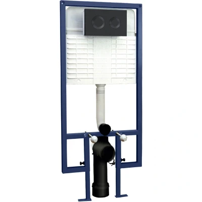 Wall Hung Toilet Frame 1136mm 1336mm h with Dual Flush Concealed Cistern Round Plate Matt Black Hudson Reed