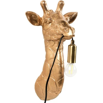 Animal-Themed Accent Wall Light Giraffe. Add a warm glow to your space with this exquisite, handmade wall lamp featuring a sculptural giraffe head. Perfect as both a practical light source and a unique decorative accent, it brings natural charm to any living space. The gold finish brings a hint of modern elegance, while durable materials ensure its long-lasting quality. Details: Product Type: Wall Lamp General Color: Gold, Brass Material Type: Synthetic Material Main Material: Polyresin Wattage: Max. 6 W Finish: Hand-Painted Light Bulbs Required: 1 Voltage rating: 230 V (50 Hz) Dimensions: Cord Length: 190 cm Depth: 10 cm Width: 23 cm Height: 36 cm Weight: 1 kg Offer Includes: 1 x Wall Lamp, Not Included: Light Bulb Key Features: Features an On/Off Switch, Perfect for Both a Bedroom and a Living Room, Adds a Homely Touch to Any Room, Unique Handmade Piece, Top-Notch Quality Materials Assembly Information: Partial Assembly Required. 5-15 min. Additional Information: The lamp is meant