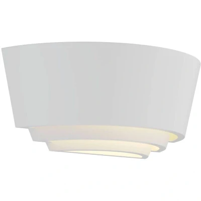 Lights.coWhite, semicircular plaster wall light Azriel suitable for painting on, three-level design The Azriel wall lamp is made of plaster, a material that you can paint on. This allows you to adapt the light better to the situation and, for example, to make it tone-on-tone with the wall colour. The three-level arrangement of the plaster lampshade not only looks decorative, but also has an effect on the light. You have free choice of the E14 bulb. As there are many different light bulbs available for this socket, you can, for example, choose one with energy-efficient LED technology or with an especially warm colour temperature to underline the cosy lighting effect.