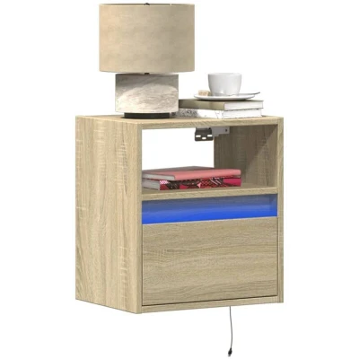 Wall mounted Bedside Cabinet with led Lights Sonoma Oak Vidaxl