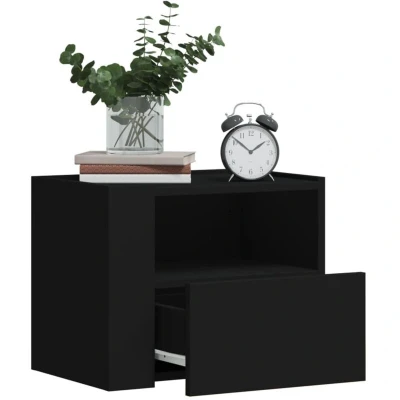 ManoManoGeneral description With a stylish design, these wall-mounted bedside cabinets fit easily into your bedroom or living room, adding a timeless charm to your interior. The cabinets are made from high-quality engineered wood, ensuring strength, stability, and moisture resistance. They feature a convenient drawer for ample storage space, allowing you to keep your essentials close at hand. Technical specifications Colour: Black Material: Engineered wood Dimensions: 45 x 30 x 35 cm (L x W x H) Maximum load capacity (total): 50 kg Maximum load capacity (drawer): 5 kg Maximum load capacity (top layer): 30 kg Maximum load capacity (laminate): 20 kg Assembly required: Yes Delivery contains: 2 x Wall-mounted bedside cabinet Installation The cabinets can be installed in two ways: you can position the two corner panels on the same or opposite sides, with the baffle plates at the front or one at the front and the other at the back. Screws and plugs for mounting are not included, so it is advisable